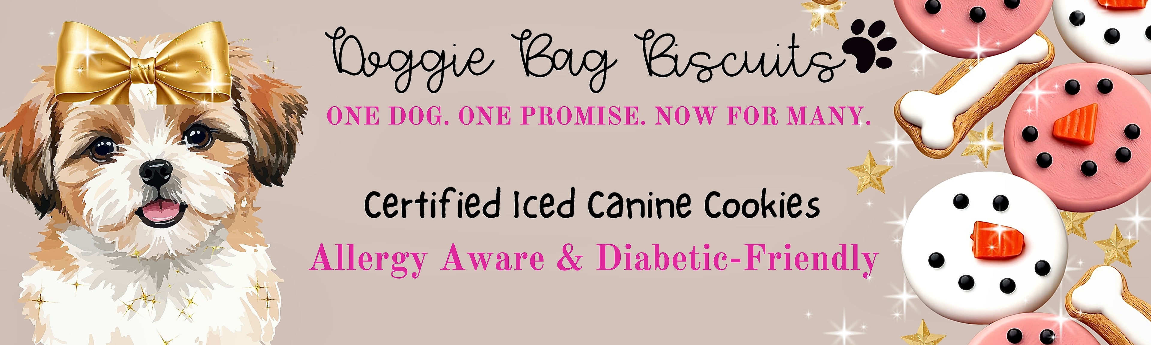 Doggie Bag Biscuits specializes in Certified, natural, vegan, grain-free, wheat-free, gluten-free, allergy-aware and diabetic-friendly dog treats made with carefully chosen organic ingredients. Every cookie is handmade in small batches, naturally sweetened with real fruit, and crafted with natural plant-based sugar-free dog icing safe for sensitive pups.