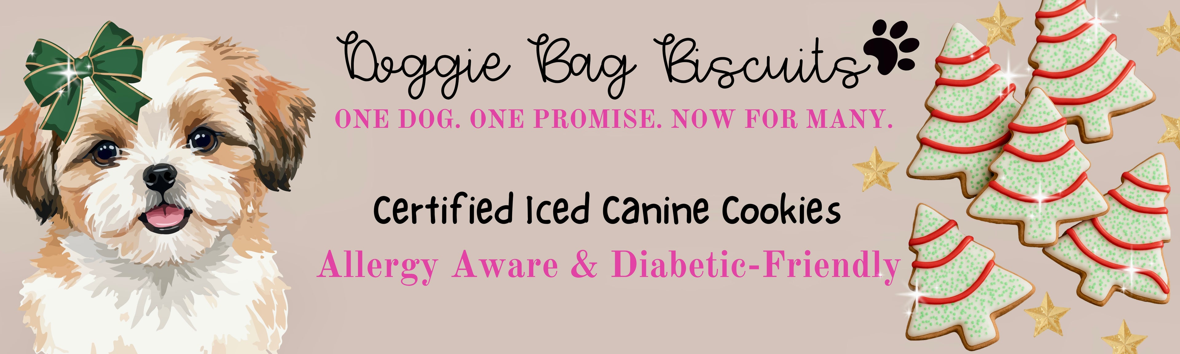 Doggie Bag Biscuits™ specializes in Certified, natural, vegan, grain-free, wheat-free, gluten-free, allergy-aware and diabetic-friendly dog treats made with carefully chosen organic ingredients. Every cookie is handmade in small batches, naturally sweetened with real fruit, and crafted with natural plant-based sugar-free dog icing safe for sensitive pups.