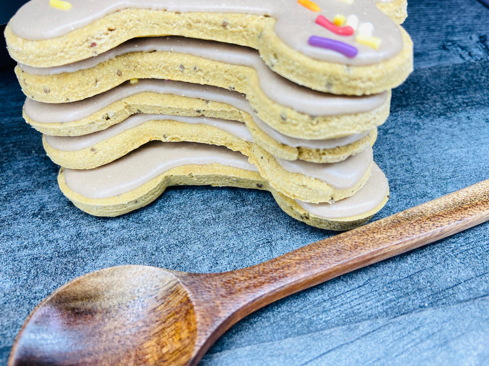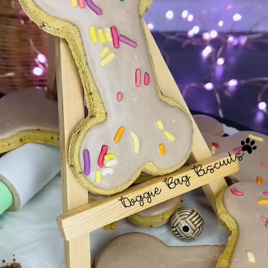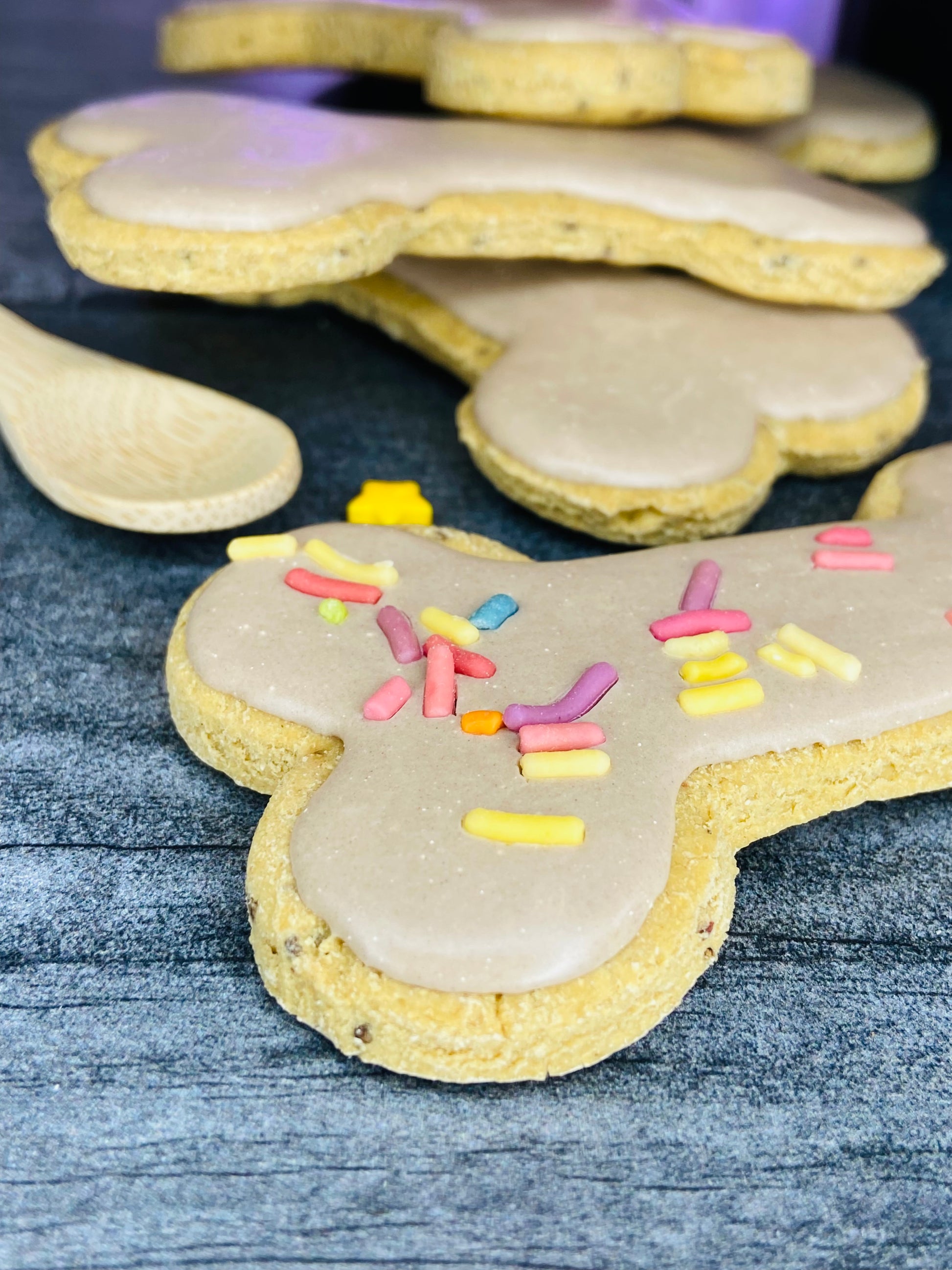 Finished with standard dog-safe icing color, used in small amounts within our made-to-order, small-batch process.